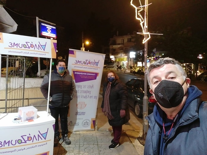 Στα συγκεκριμένα σημεία βρέθηκαν οι Γιάννης Μυλωνάκης, επικεφαλής της δημοτικής παράταξης «ΑΛΛΑΖΟΥΜΕ», με τους δημοτικούς συμβούλους Κώστα Κρητικίδη, Άννα Γάκη, Γιάννη Λογοθέτη και Πέτρο Διακογιάννη, τα μέλη Μάκη Τάρλα, Τάνια Νικολούλια, Χρήστο Πένητα, Κώστα Γαλέα, Ορέστη Κύρτση, Αργύρη Καρατράντο, Μυρσίνη Ζαφειράκη και Λιάνα Σιούλα, τον πρόεδρο και αντιπρόεδρο του Συλλόγου «Αλληλεγγύη για όλους» Βασίλη Σαββίδη και Γιώργο Νεκταρίδη και τον εκπρόσωπο του οργανισμού «Δεσμοί Αλληλεγγύης» Σταύρο Παπαϊωάννου.